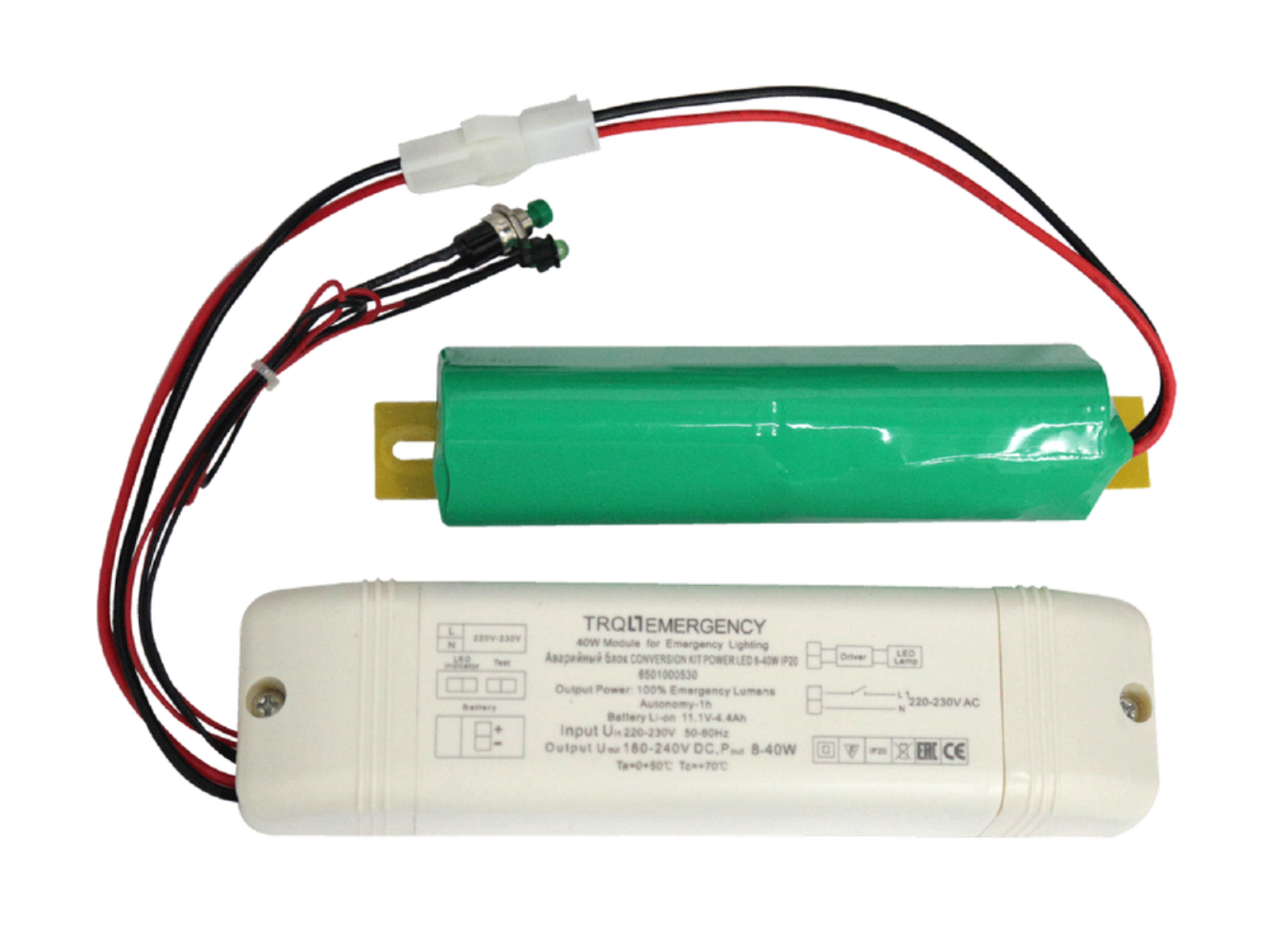 Блок аварийного питания подключается к щитку освещения, LED-линейке светильника или дополнительной аварийной линейке. Некоторые модификации БАП питают не отдельную LED-линейку, а драйвер светильника (т.е. светильник целиком). Монтируется в корпус осветительного прибора или в отдельную выносную коробку.